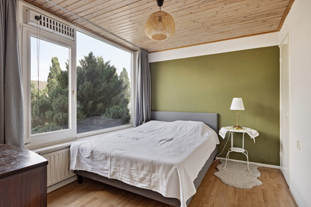 -Drie slaapkamers welke alle drie voorzien zijn van een inbouwkast. De kleinste slaapkamer verleent tevens toegang tot het platte dak boven de keuken. en een badkamer.