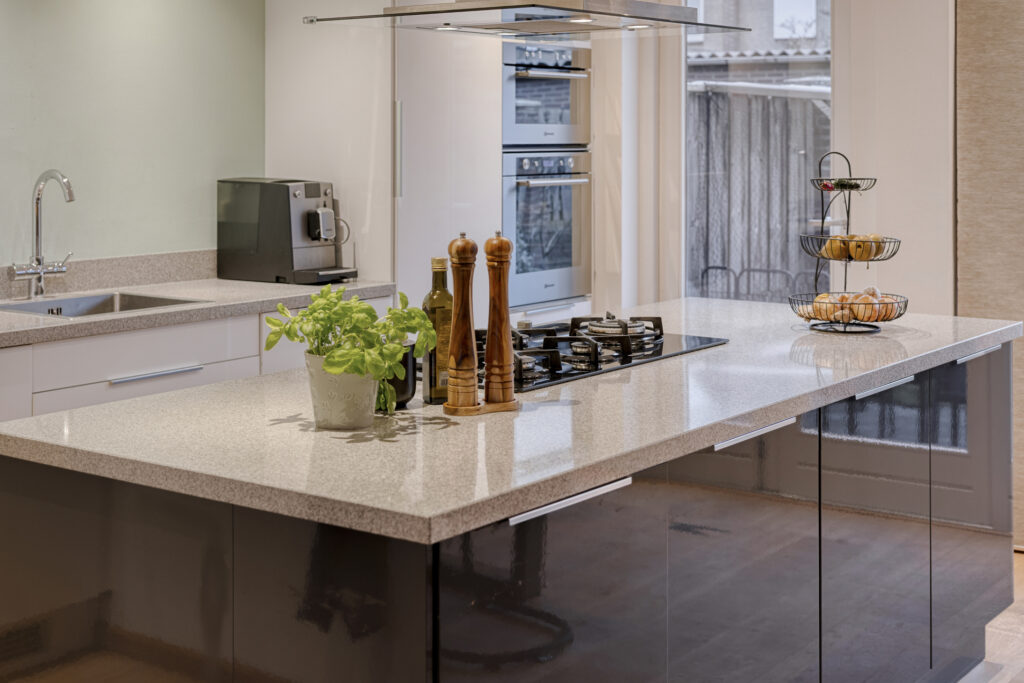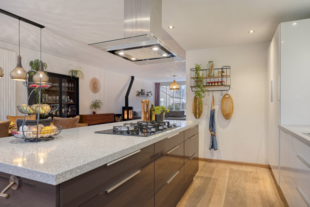 – Moderne open keuken met kookeiland en hoogwaardige apparatuur