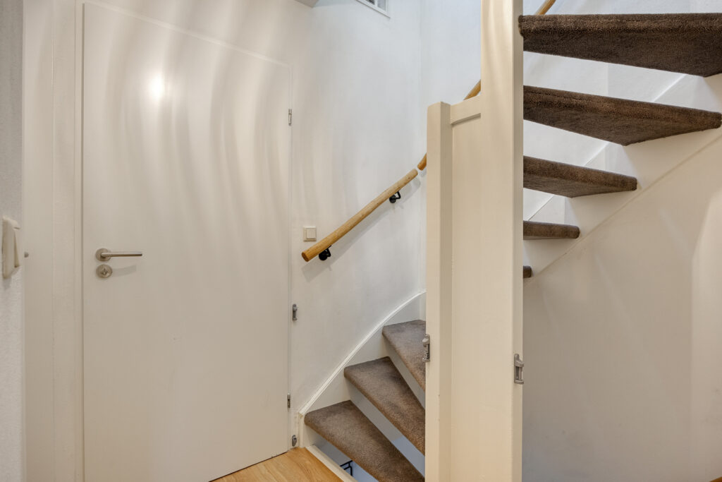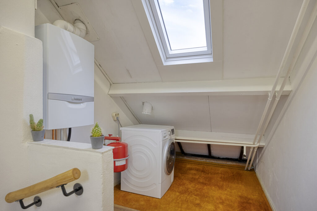 Op de tweede verdieping valt de lichte overloop direct op door het grote dakraam. Hier bevinden zich tevens de aansluiting voor de wasmachine en de CV-ketel.