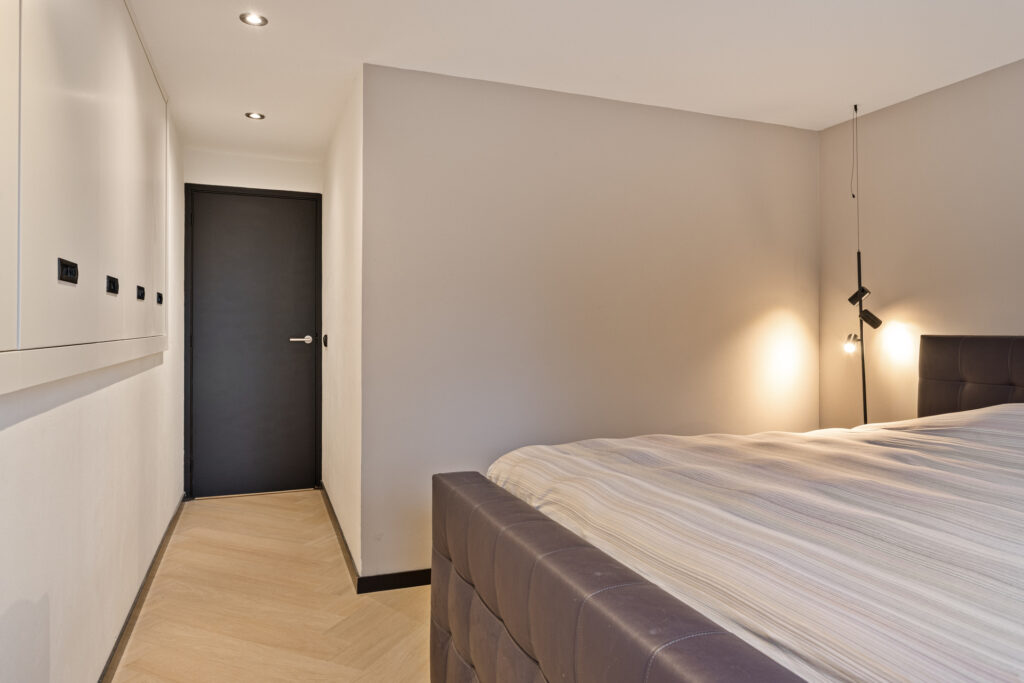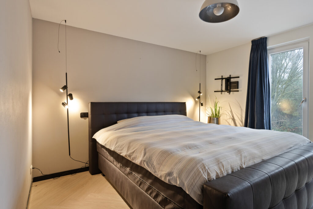 De grootste slaapkamer, tevens master bedroom, ligt aan de voorzijde van de woning. Deze royale kamer is voorzien van maatwerkkasten, inbouwspots en een Frans balkon, met grote ramen die zijn uitgevoerd in kunststof met draai-/kiepramen en HR++ beglazing.