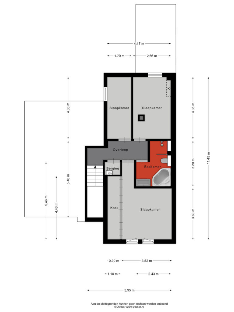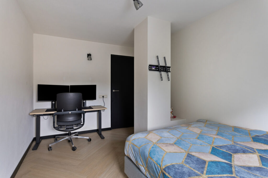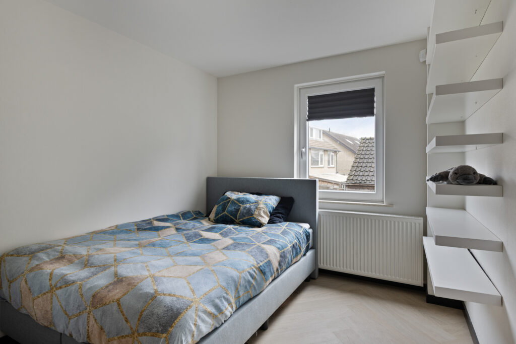 Aan de achterzijde bevinden zich twee slaapkamers. De ruime tweede slaapkamer is licht en fraai van formaat, met voldoende plek voor een groot bed en een kast, waardoor dit een ideale kinderkamer is. De derde slaapkamer is iets compacter maar eveneens licht en prettig van sfeer, perfect geschikt als logeerkamer, studeer- of werkkamer. Ook deze kamers beschikken over kunststof raampartijen met draai-/kiepramen en HR++ beglazing.