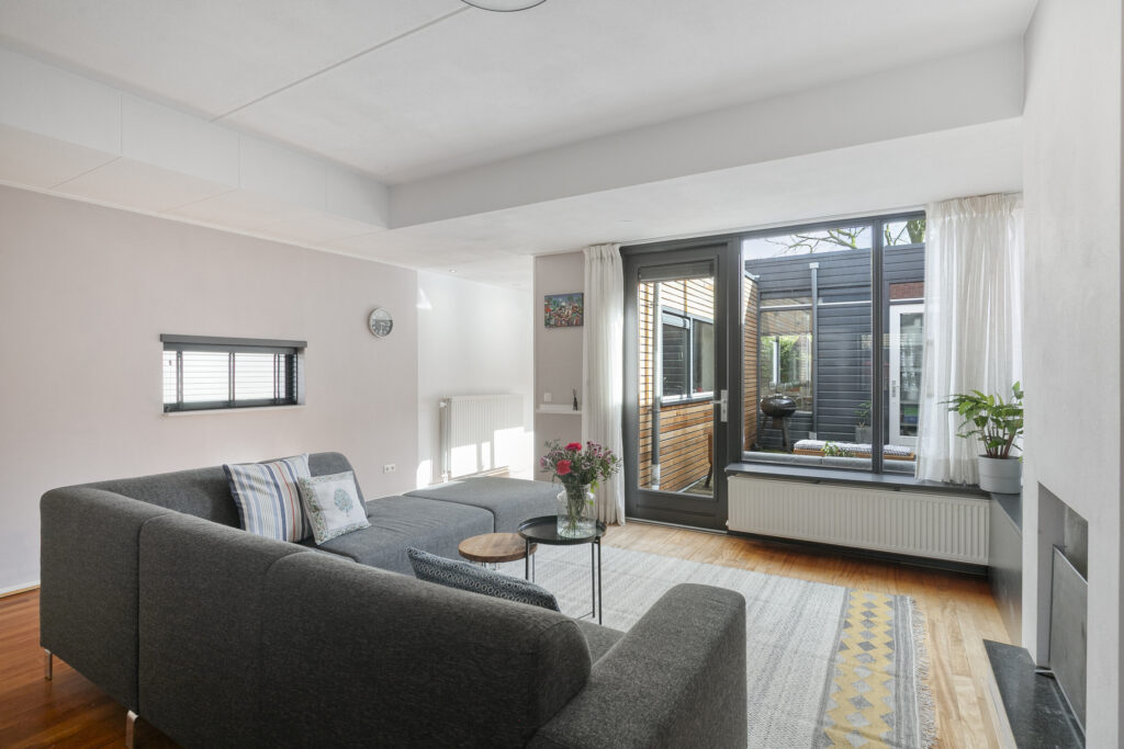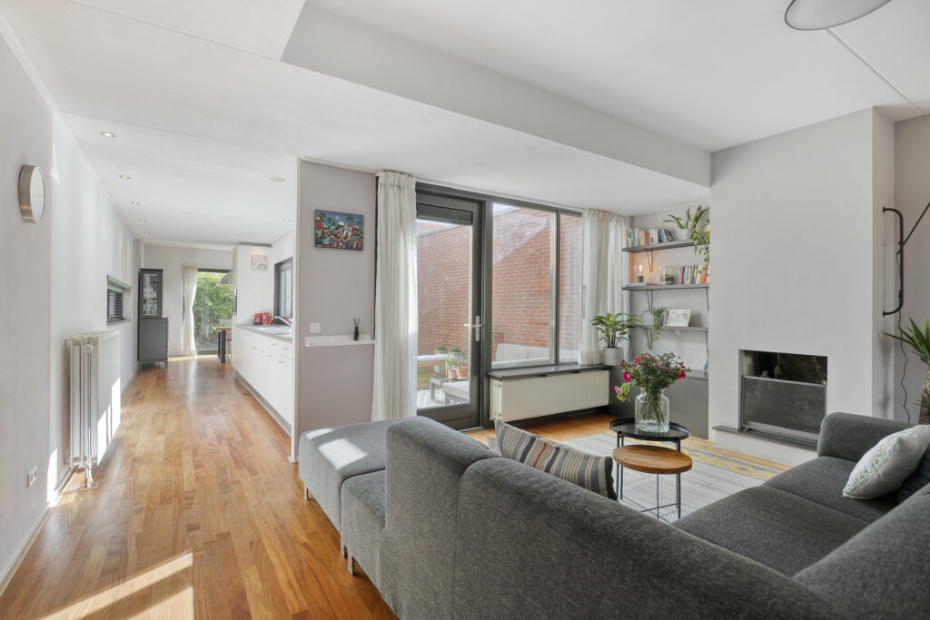 De sfeervolle woonkamer is voorzien van een openhaard, een praktische trapkast en heeft een fijn zicht op de patiotuin, welke middels een deur te bereiken is. Op de vloer ligt een nette parketvloer welke doorloopt op de rest van de begane grond.
