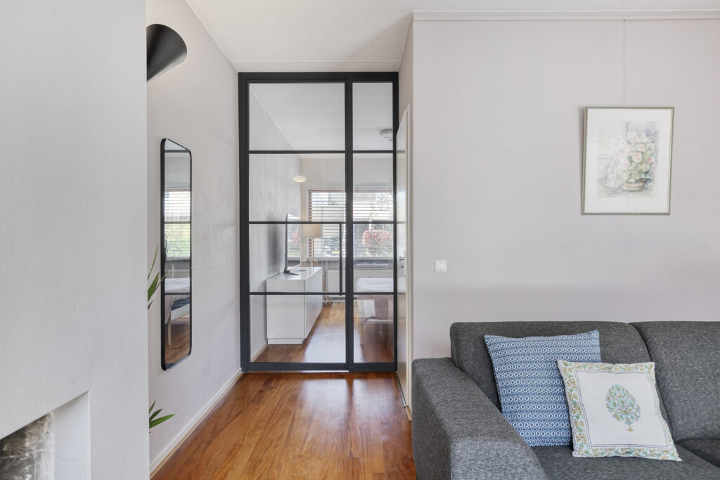 – De mogelijkheid bestaat om een separate slaap-, werk- of speelkamer op de begane grond te maken. Hierdoor zou er bijvoorbeeld een kantoorruimte met een eigen ingang gerealiseerd kunnen worden (via de hal).
