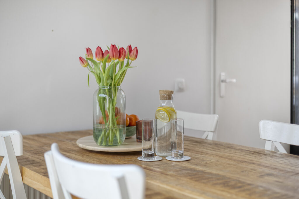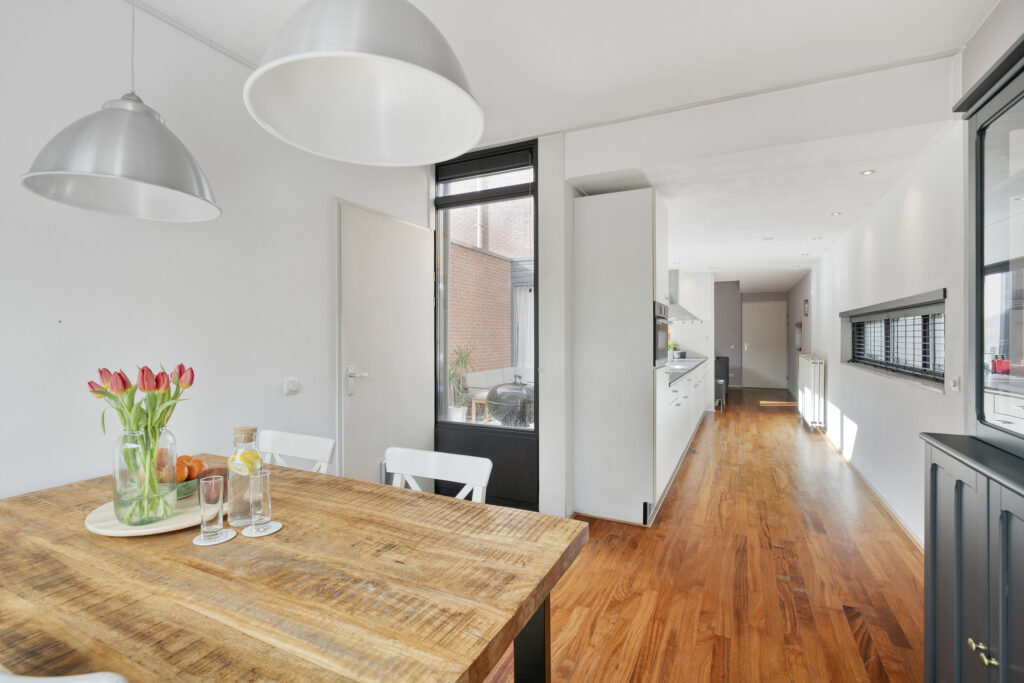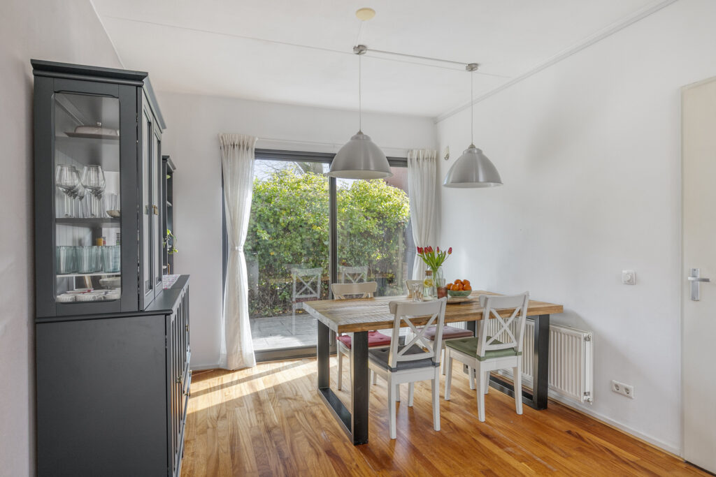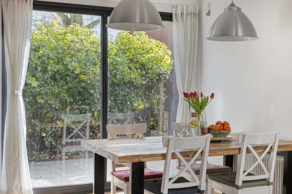 Aan de achterzijde ligt de heerlijk ruime eetkamer met zicht op de achtertuin.
