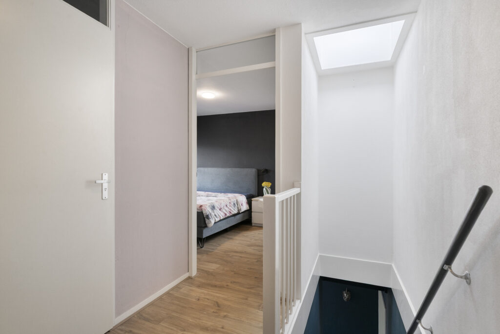De overloop biedt toegang tot twee ruime slaapkamers en een complete badkamer. Tevens is er een lichtkoepel aanwezig die voor extra daglicht zorgt. Zowel de overloop als de slaapkamers zijn voorzien van een nette laminaatvloer.