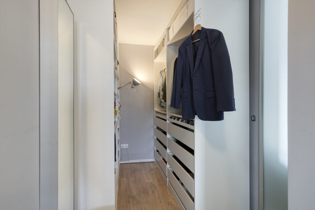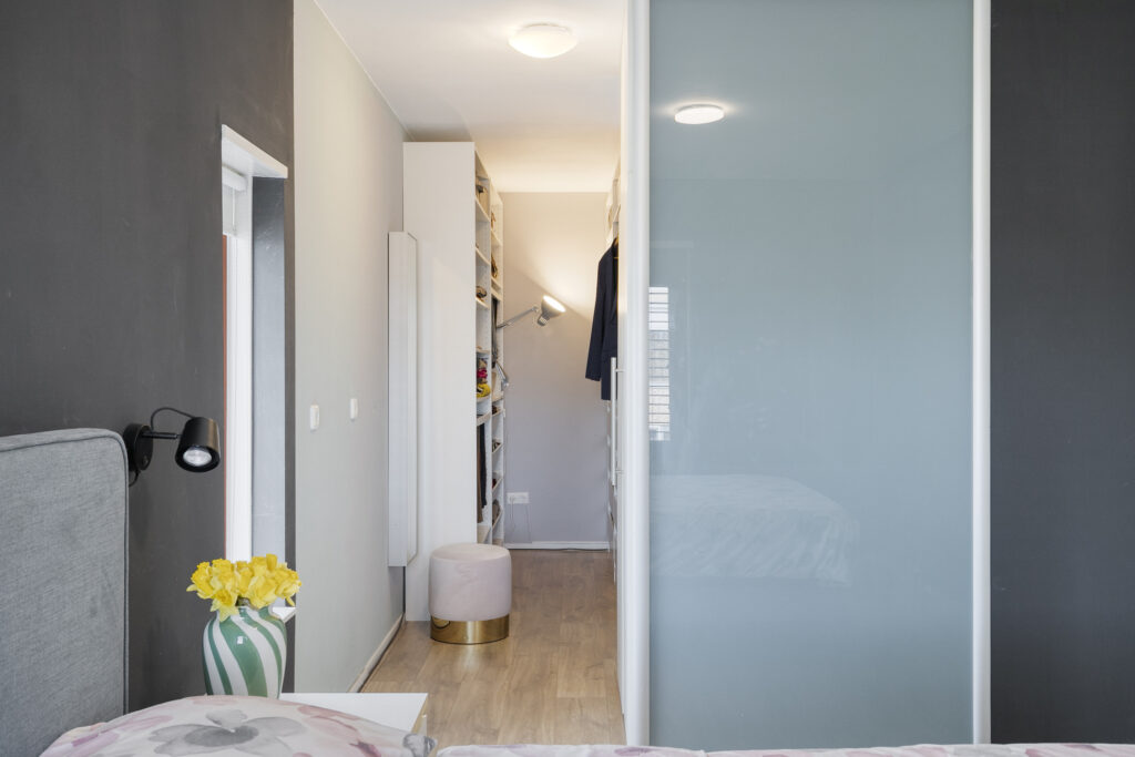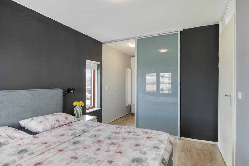 Slaapkamer 1 (circa 16 m²) is aan de voorzijde gelegen en is voorzien van een fijne ruime inloopkast, af te sluiten door een schuifdeur.