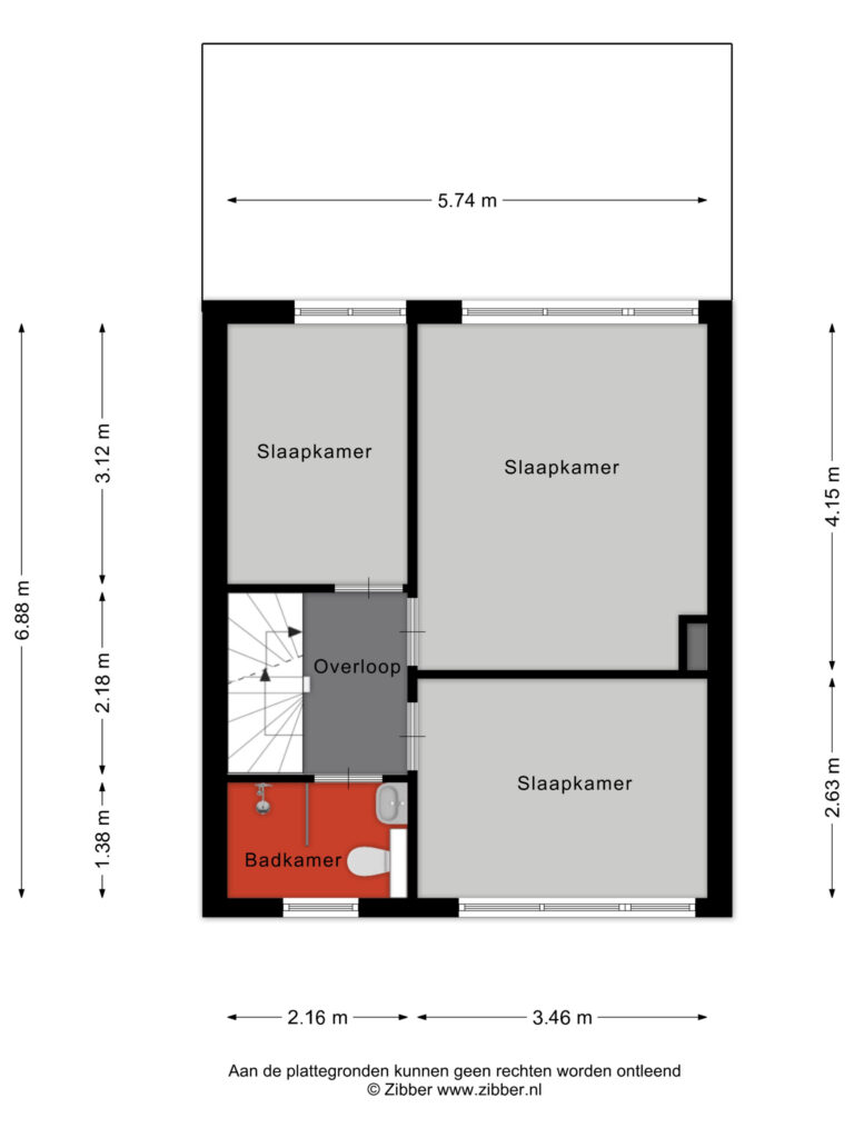 Op de eerste verdieping bevinden zich drie slaapkamers en de badkamer.