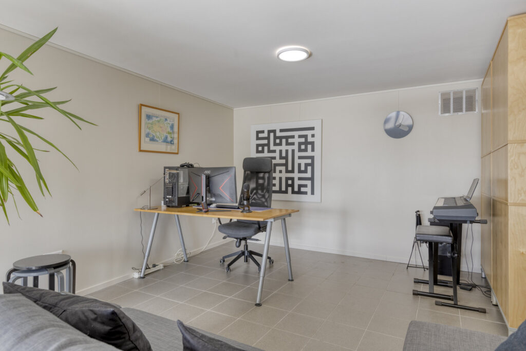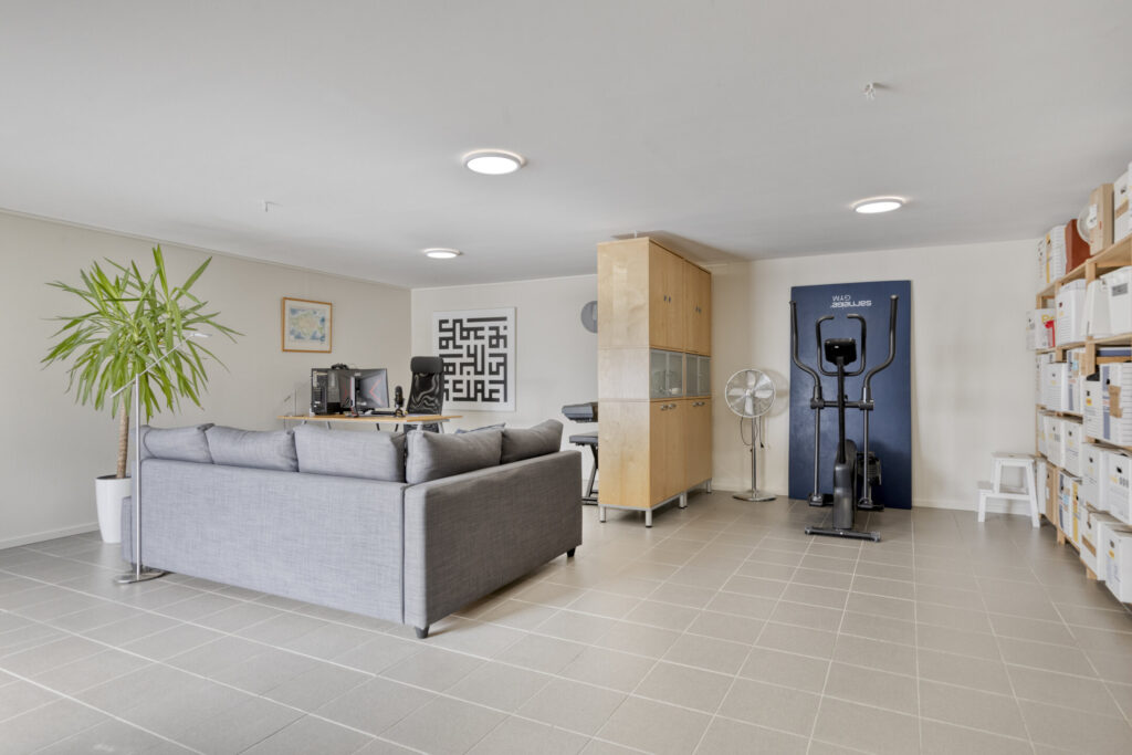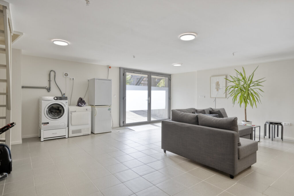 De ruimte is strak afgewerkt met stucwerk wanden, elektra, isolatie en een nette tegelvloer. Dankzij de moderne afwerking is deze verdieping ideaal te gebruiken als gastenverblijf, kantoor, gym of zelfs home cinema. Ook de aansluiting voor de wasmachine is aanwezig. Een volwaardige verdieping met eindeloos veel mogelijkheden, die tevens uitstekend dienst kan doen als opberg- en wasruimte.