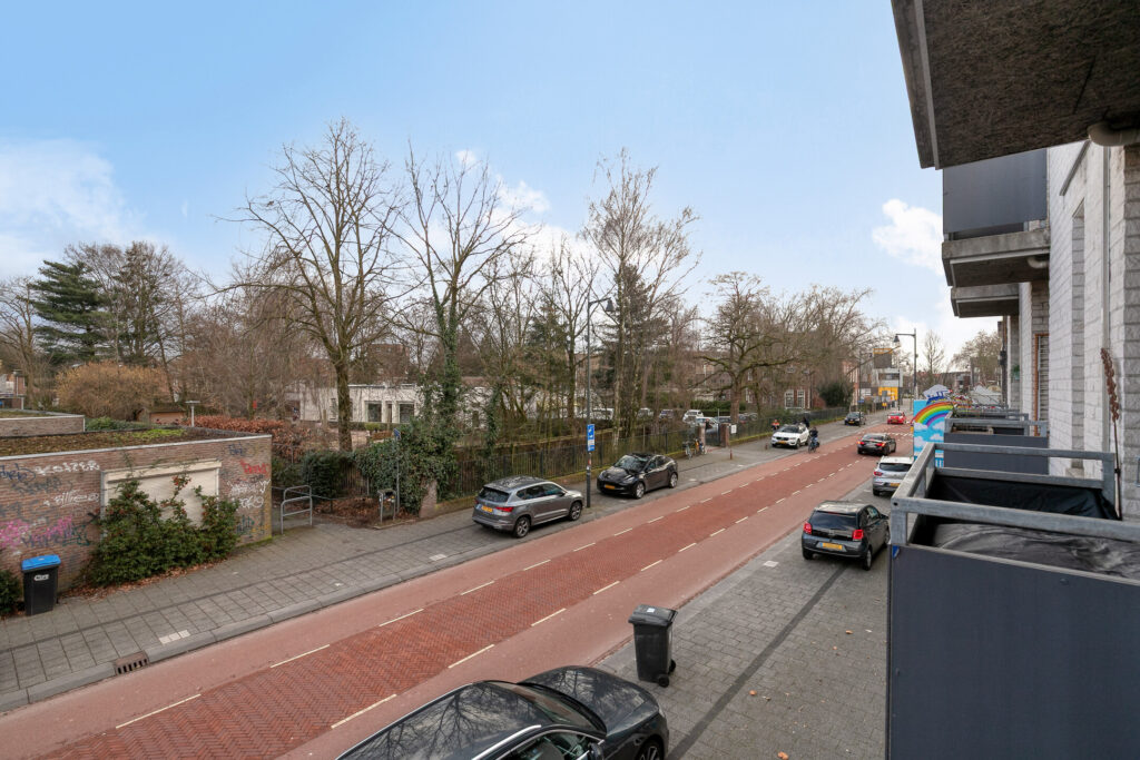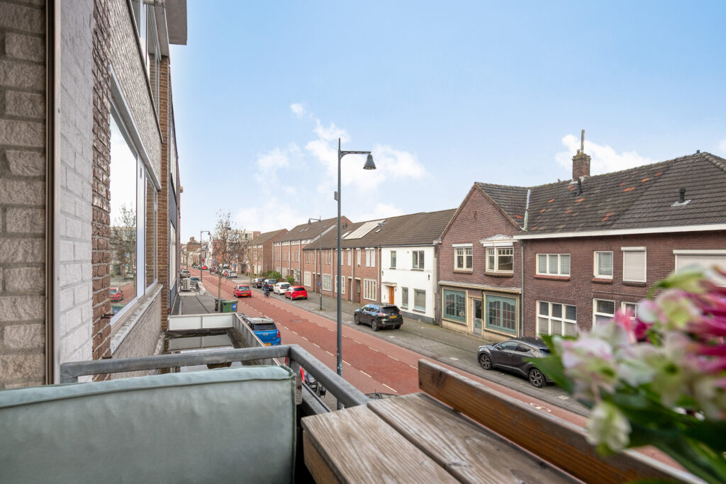 Het overdekte balkon ligt aan de voorzijde van het complex, op het zuidoosten, met uitkijk over de levendige Hoogstraat. Er zijn een bergkast en een elektrisch bedienbaar rolluik aanwezig, ideaal als zonwering. Vanaf het balkon heb je een vrij uitzicht waardoor er nauwelijks inkijk is door overburen aan de voorzijde van de woning.