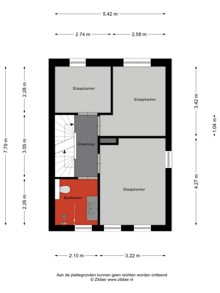 Op de eerste verdieping bevinden zich drie slaapkamers en de badkamer.