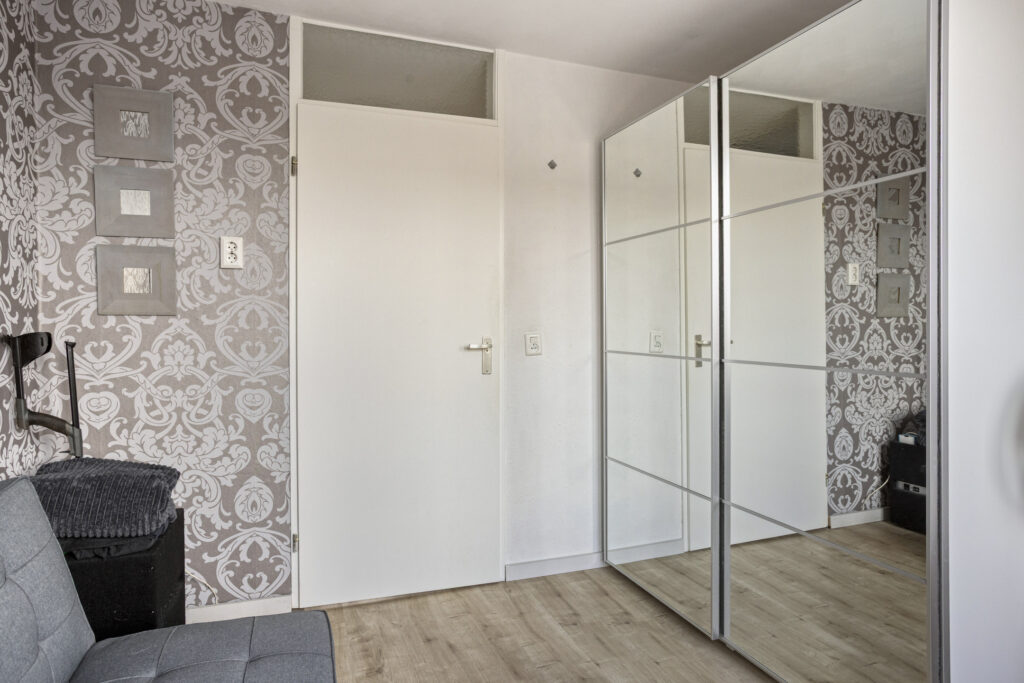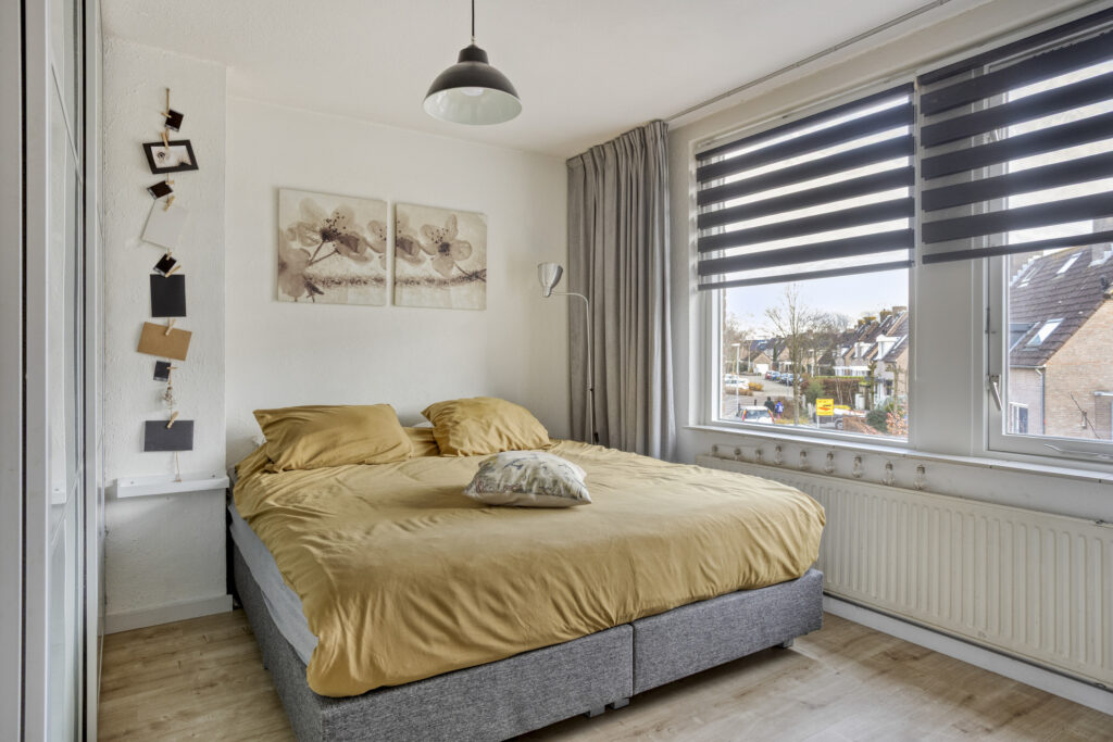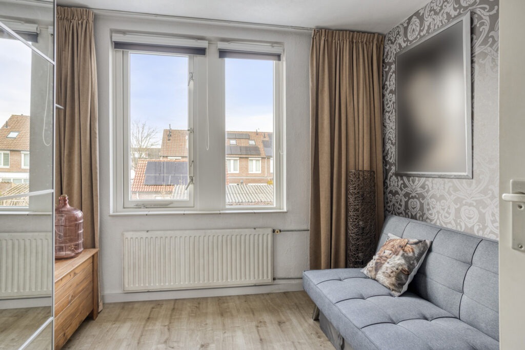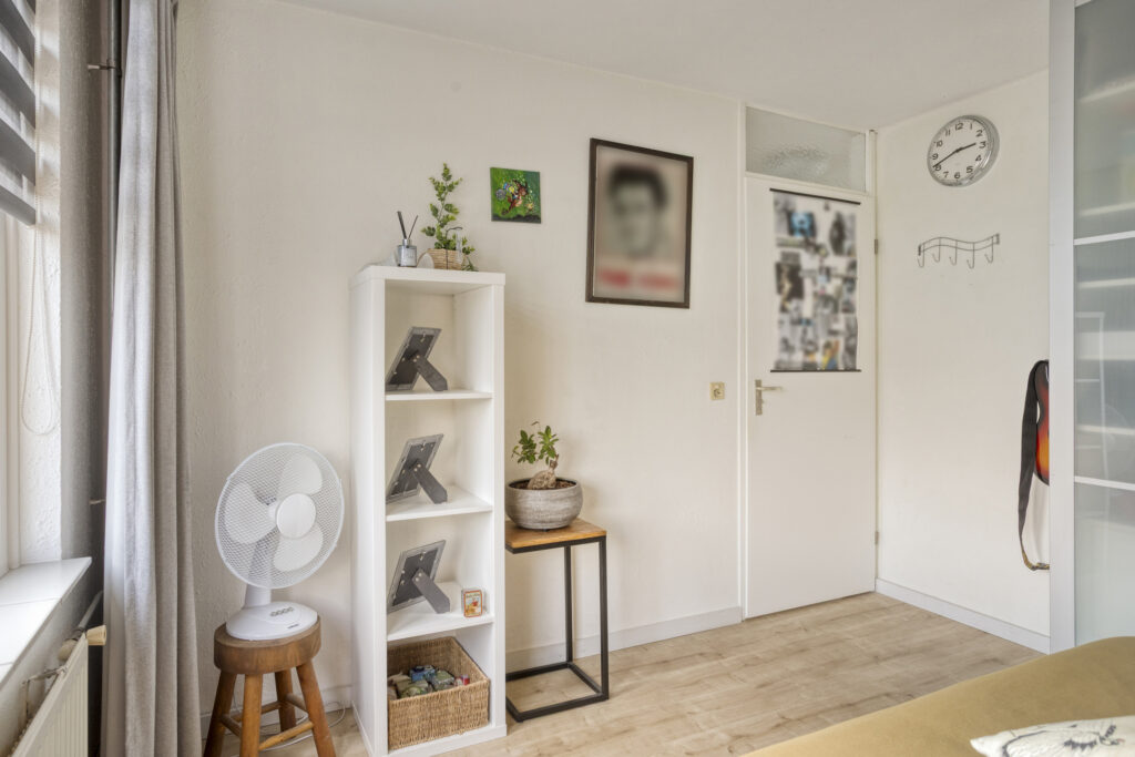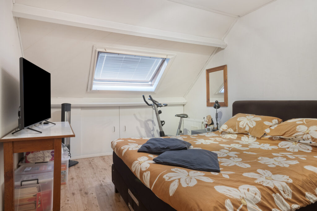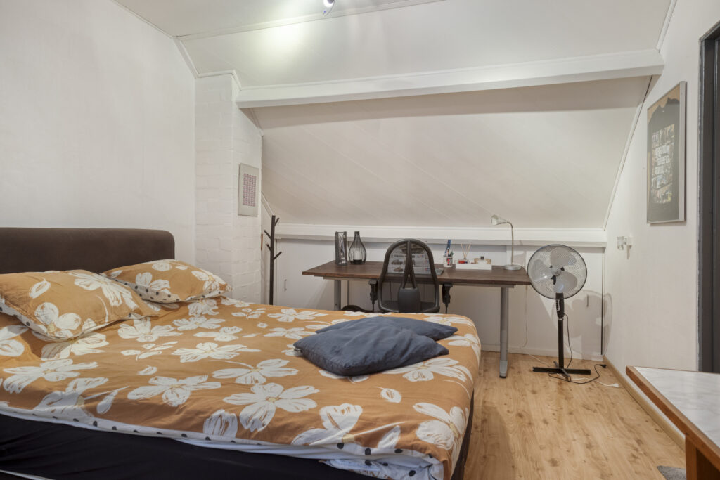 Daarnaast is er een afsluitbare zolderslaapkamer aanwezig. Deze kamer beschikt over bergruimte in de knieschotten en een groot Velux dakraam aan de achterzijde, wat zorgt voor prettig daglicht. Een volwaardige vierde slaapkamer, maar ook zeer geschikt als werk of logeerkamer.