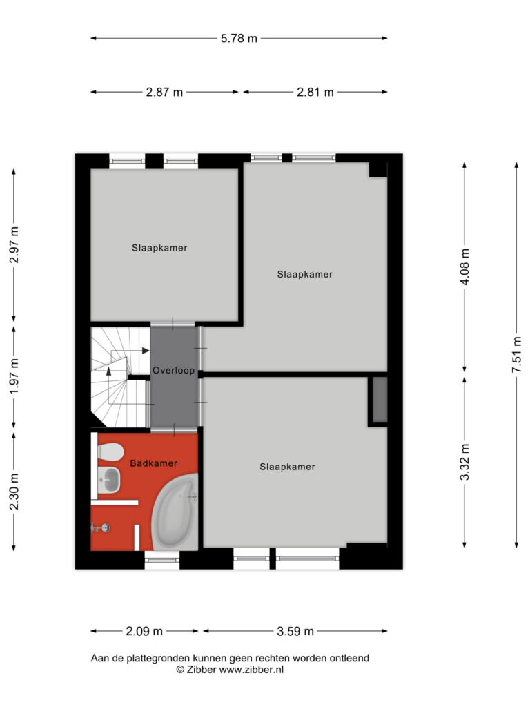 Op de eerste verdieping kom je op een ruime overloop met toegang tot drie slaapkamers, de badkamer en een afgesloten deur naar de zolderverdieping.