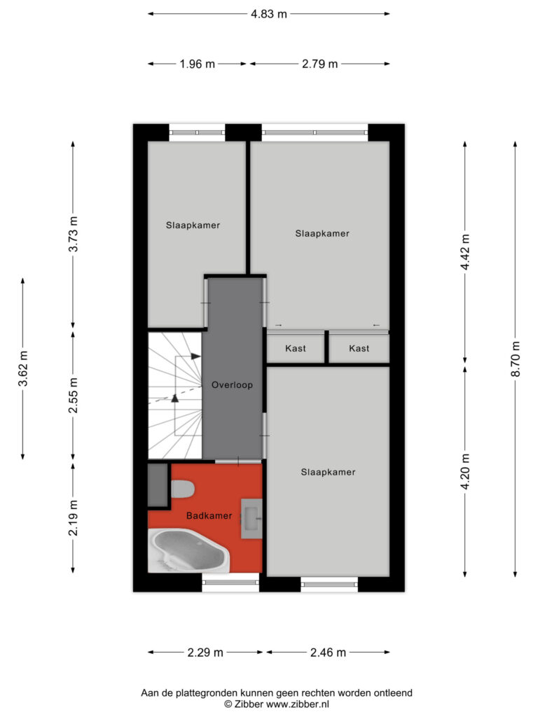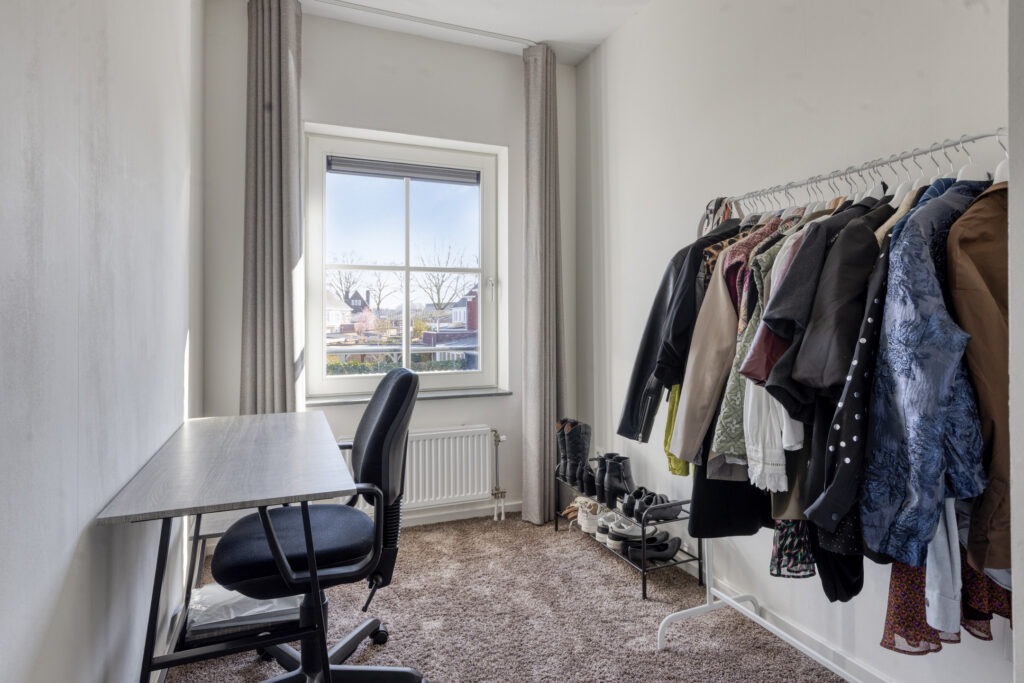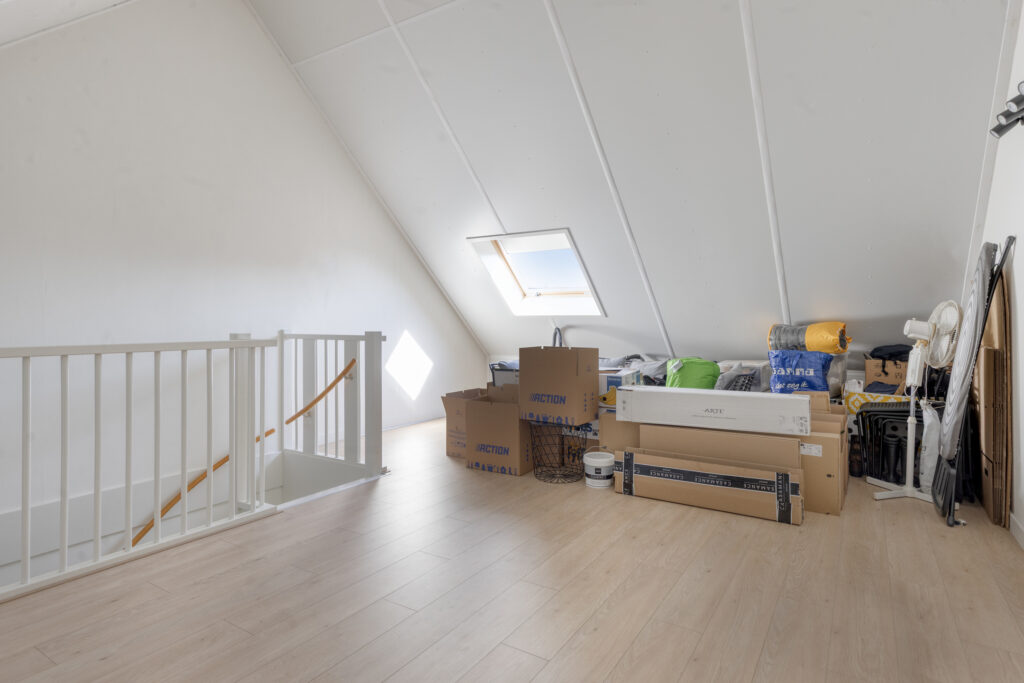 De ruime tweede verdieping biedt volop mogelijkheden en kan bijvoorbeeld worden ingericht als extra slaapkamer, werkruimte of hobbykamer. Onder de schuine dakvlakken is extra bergruimte aanwezig.