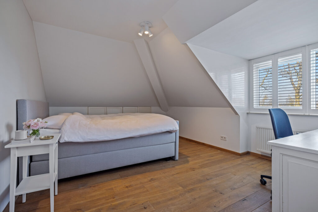 De slaapkamers zijn allen voorzien van een dakkapel met shutters en bergruimte onder de kapschuinten.
