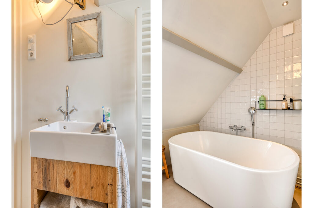 De tweede badkamer is uitgerust met een ligbad, een wastafelmeubel en een designradiator. Tevens zijn hier een dakkapel en bergruimte onder de kapschuinte aanwezig.