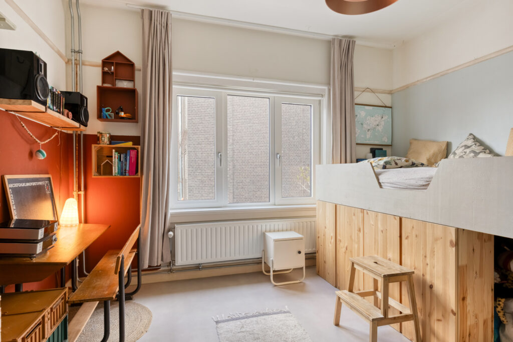 Slaapkamer 2 (circa 13,5 m²) is aan de achterzijde gelegen en is voorzien van een Novilon vloer, een inbouwkast en een kunststof raamkozijn met HR++ beglazing.