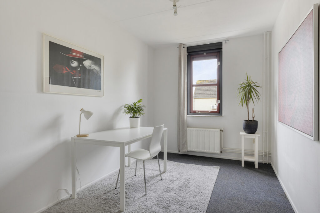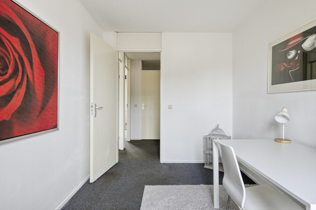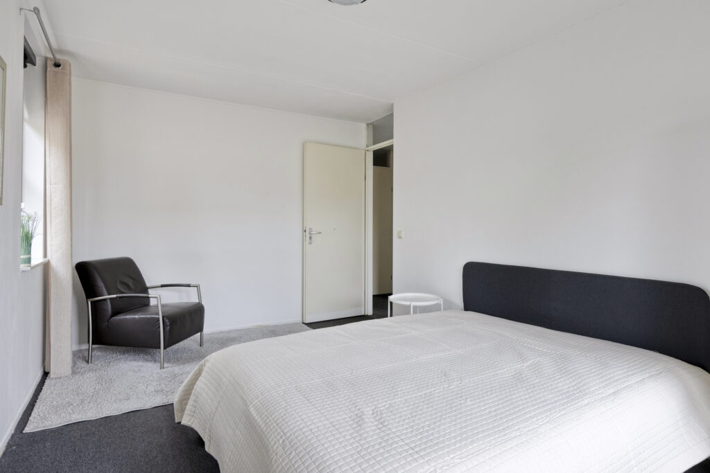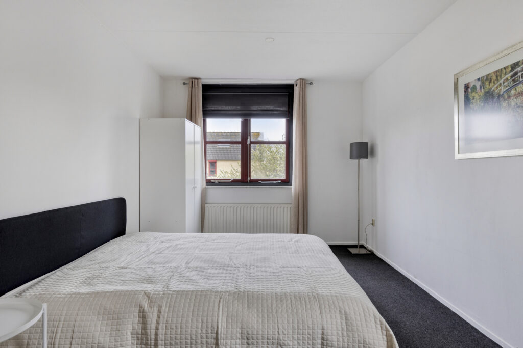 De hoofdslaapkamer ligt aan de achterzijde van de woning en is royaal van formaat. De kamer is licht en netjes afgewerkt met strak gestucte wanden. Ook de tweede slaapkamer, eveneens aan de achterzijde gelegen, is wat kleiner maar zeer geschikt als werkkamer of logeerkamer.