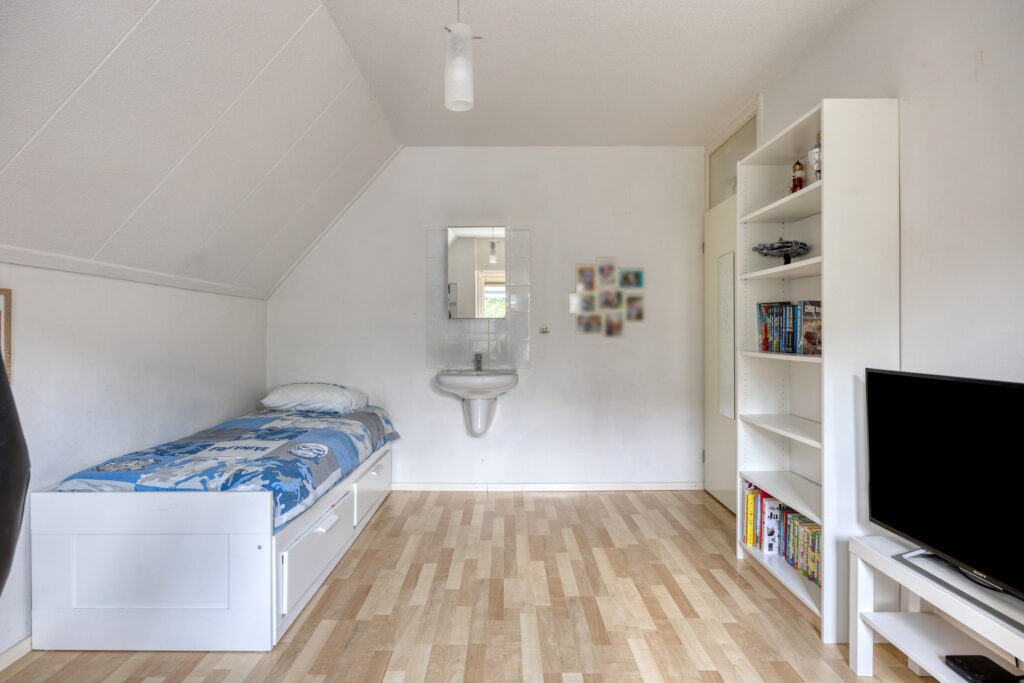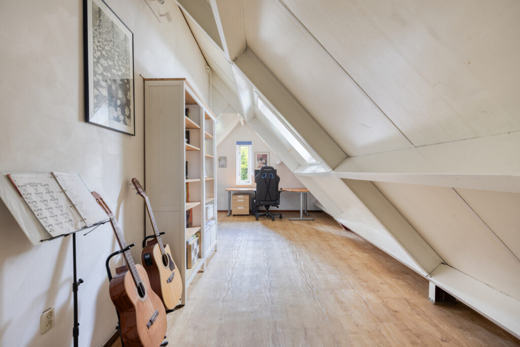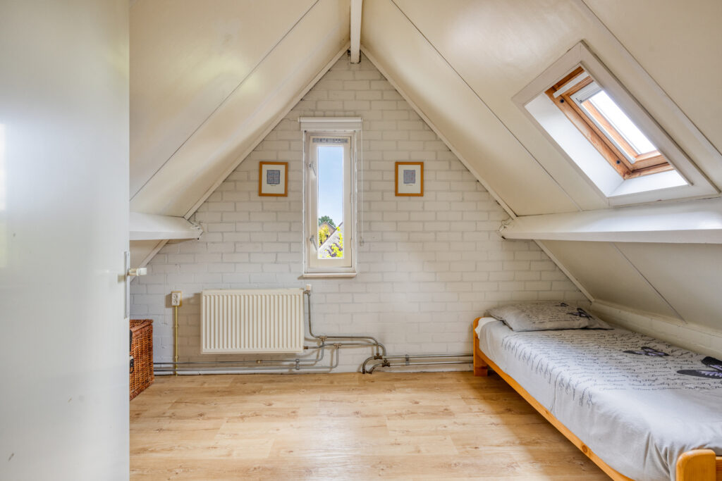 Aansluitend is de vijfde slaapkamer gelegen, voorzien van een nette vinyl vloer, een dakraam en een draairaam.