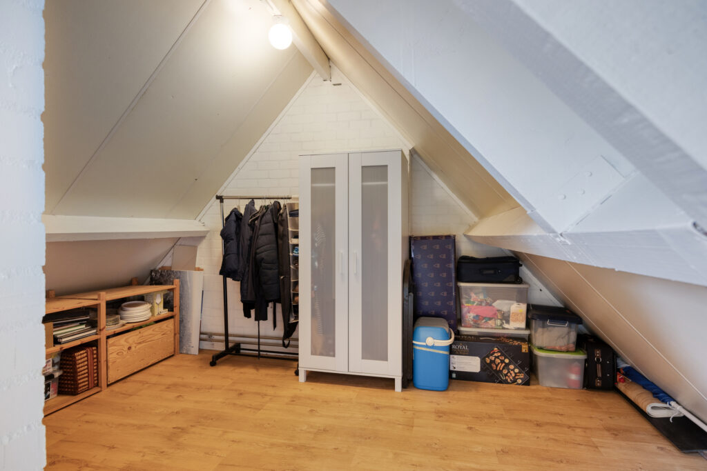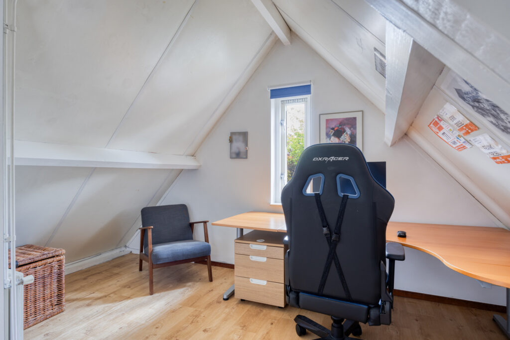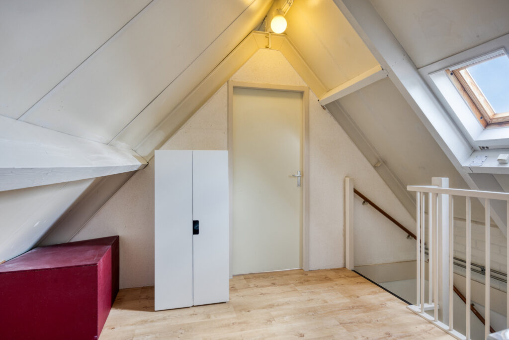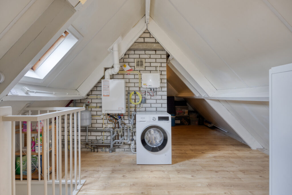 Via een vaste trap is de tweede verdieping te bereiken met op de zeer ruime voorzolder een dakraam, de opstelling van de c.v.-ketel, de wasmachineaansluiting en veel bergruimte. Indien gewenst is het mogelijk om hier een extra slaapkamer te creëren.