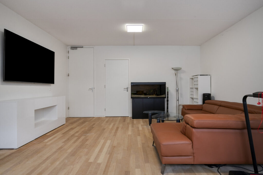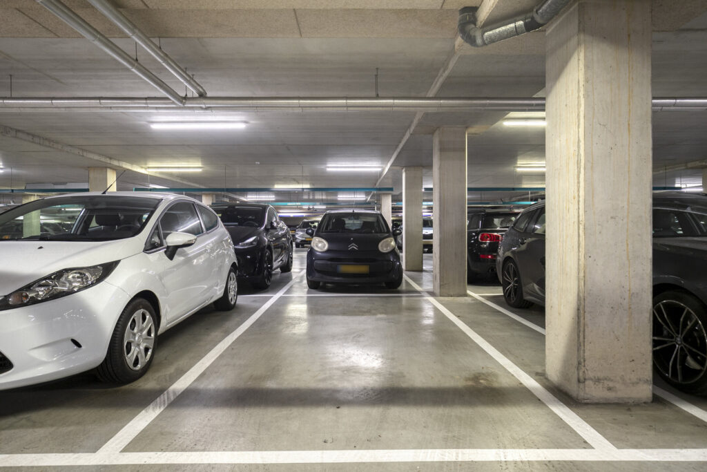 Via een ingang tegenover de woning bereik je de parkeerkelder met de privé parkeerplaats. Tevens is hier de ruime privé berging gelegen.