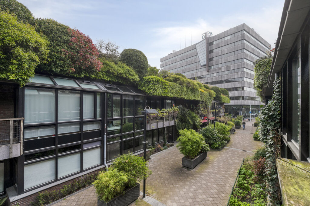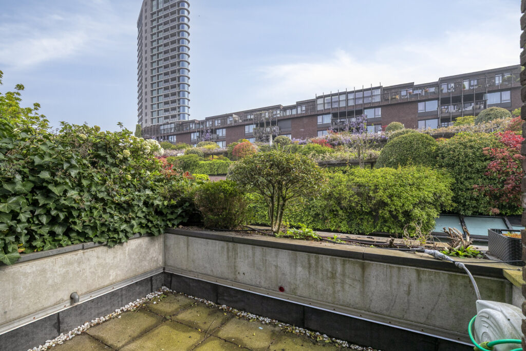 Het zonnige dakterras aan de voorzijde biedt veel privacy door de vaste beplanting op de randen en biedt een prachtig uitzicht op de schilderachtige stadsarchitectuur. Tevens beschikt het dakterras over een buitenkraan, stopcontacten en een elektrische zonneluifel.