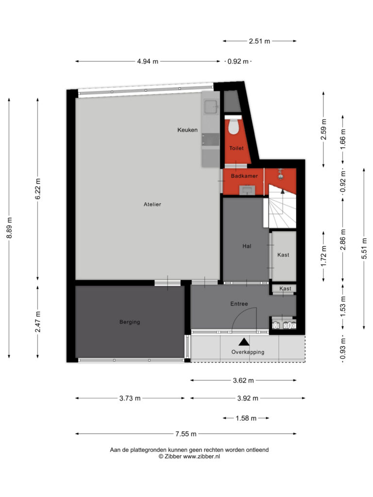 In een groene en karakteristieke straat midden in de binnenstad ligt deze fraai afgewerkte atelierwoning. De overdekte entree biedt toegang tot het voorportaal, waar de uitgebreide meterkast is gesitueerd. De ruimte is afgewerkt met een nette laminaatvloer en biedt toegang tot zowel het atelier als de hal van het bovengelegen appartement.