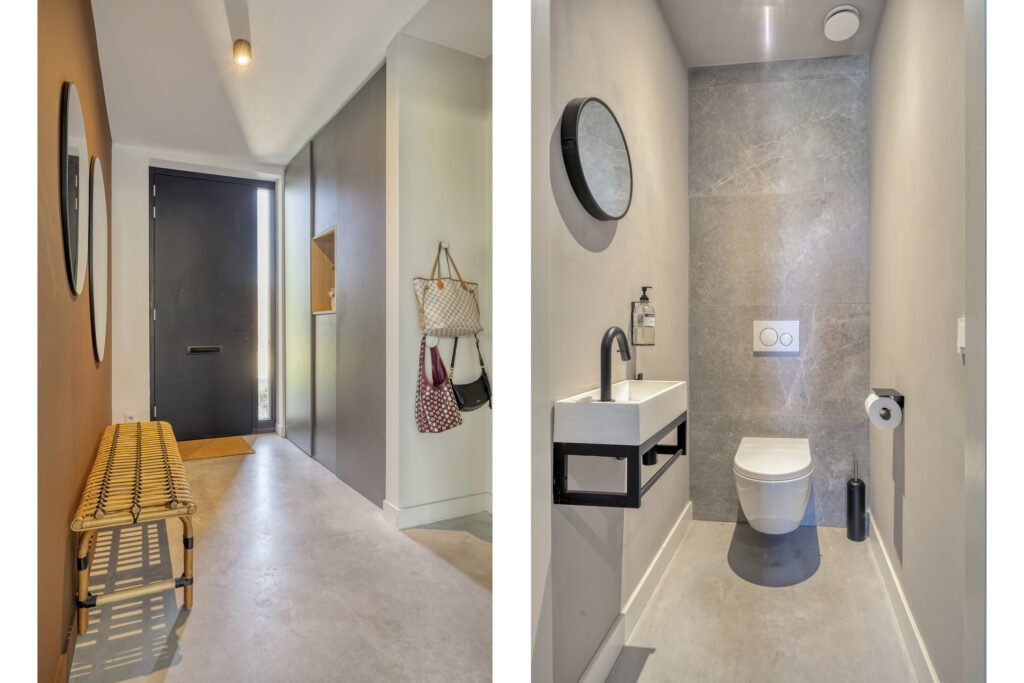 Via de verzorgde entree kom je in de hal met garderobe en moderne toiletruimte.