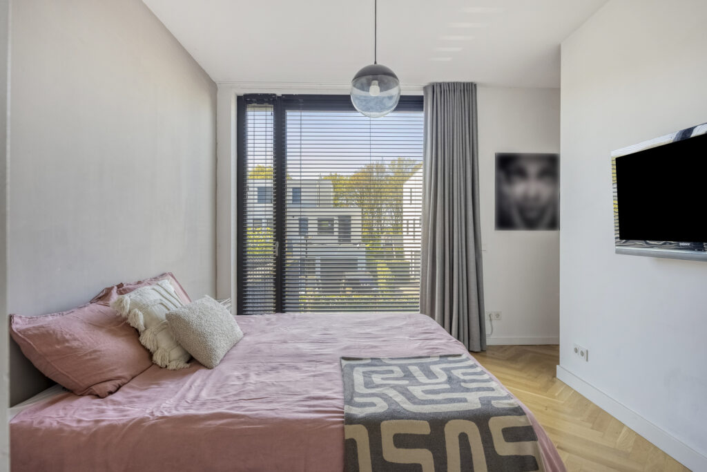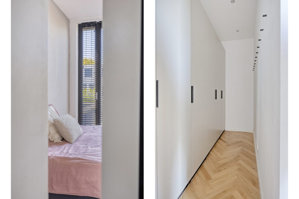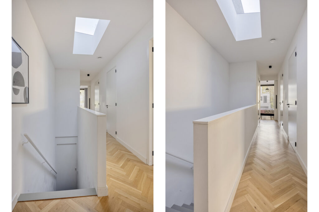 De eerste verdieping is afgewerkt met een visgraat parketvloer en is voorzien van vloerverwarming. Hier vind je drie royale slaapkamers. De ouderslaapkamer ligt aan de achterzijde en beschikt over een fijne walk-in-closet.