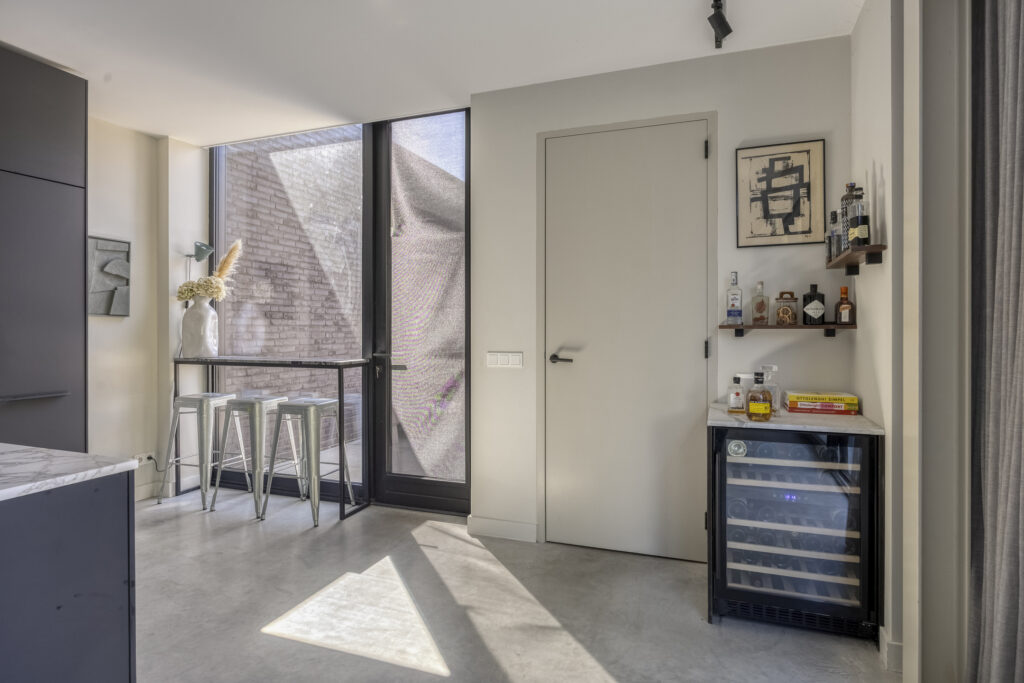 Via de keuken bereik je de bijkeuken met een gezellige barista hoek en extra bergruimte. Praktisch en sfeervol tegelijk.