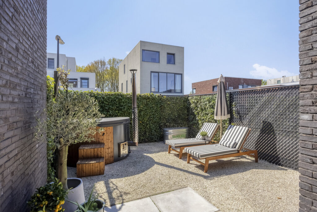 Wat deze woning extra bijzonder maakt zijn de twee tuinen. De zijtuin is een rustige plek direct aan de keuken, ideaal voor een kop koffie in de ochtend of een borrel in de avond. Hier zit je echt privé en heb je ook een handige achterom. De inpandige berging zorgt voor extra gemak.