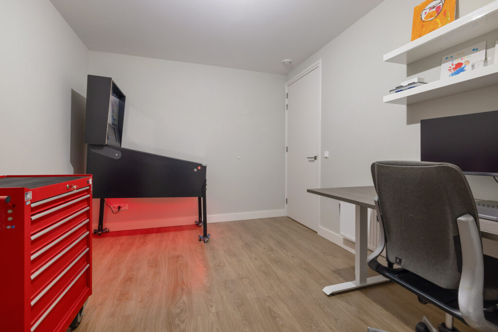 Vanuit de ontvangsthal gaat u met de trap naar beneden naar het souterrain, dit betreft een volwaardige extra woonlaag. Deze ruimte is zeer royaal en afgewerkt met strak stucwerk en een moderne PVC-vloer. Aan de achterzijde vindt u een lichte kamer die momenteel als royale kantoorruimte wordt gebruikt, maar ook uitstekend dienst kan doen als extra slaapkamer, gastenkamer of hobbyruimte. Naast deze ruimte is een praktische bergruimte aanwezig, met alle voorzieningen om eventueel een extra badkamer of sauna te realiseren. In het midden van het souterrain bevindt zich een royale kamer, flexibel te gebruiken als speelruimte, hobbykamer of extra kantoor. Daarnaast is er een wasruimte met aansluiting voor de wasmachine en extra bergruimte. Aan de voorzijde ligt een zeer ruime en lichte kamer, ideaal als grote hobbyruimte, home cinema of extra woonkamer, met daglicht via het raam aan de voorzijde. Het souterrain biedt hiermee veel mogelijkheden en is volledig afgewerkt, licht en comfortabel.