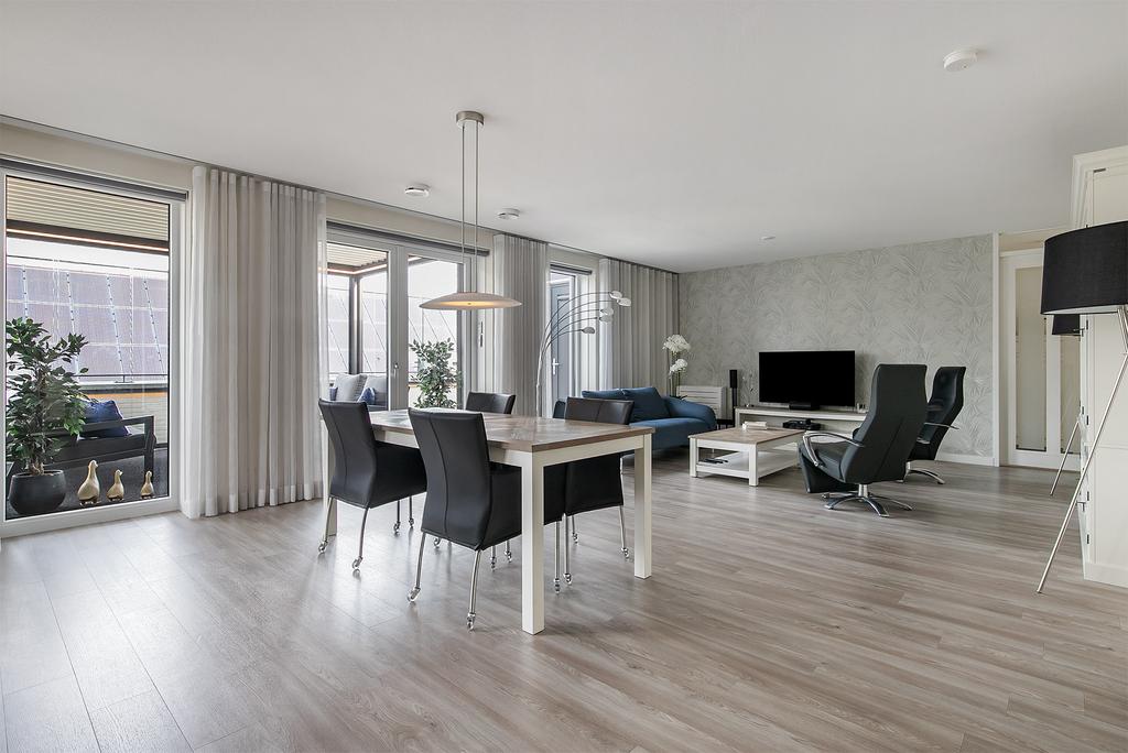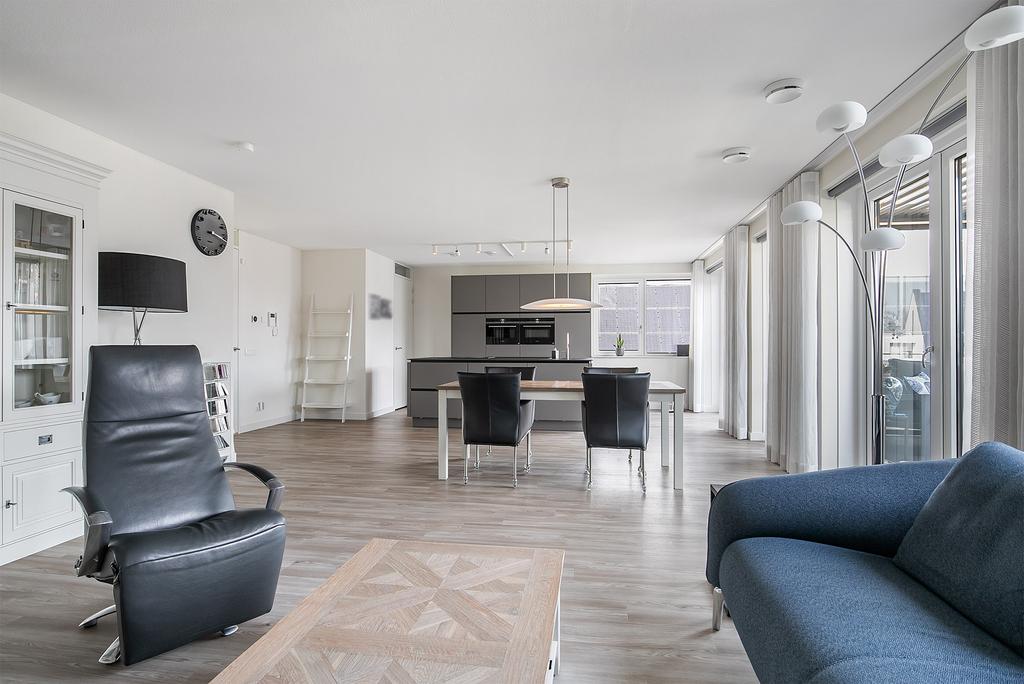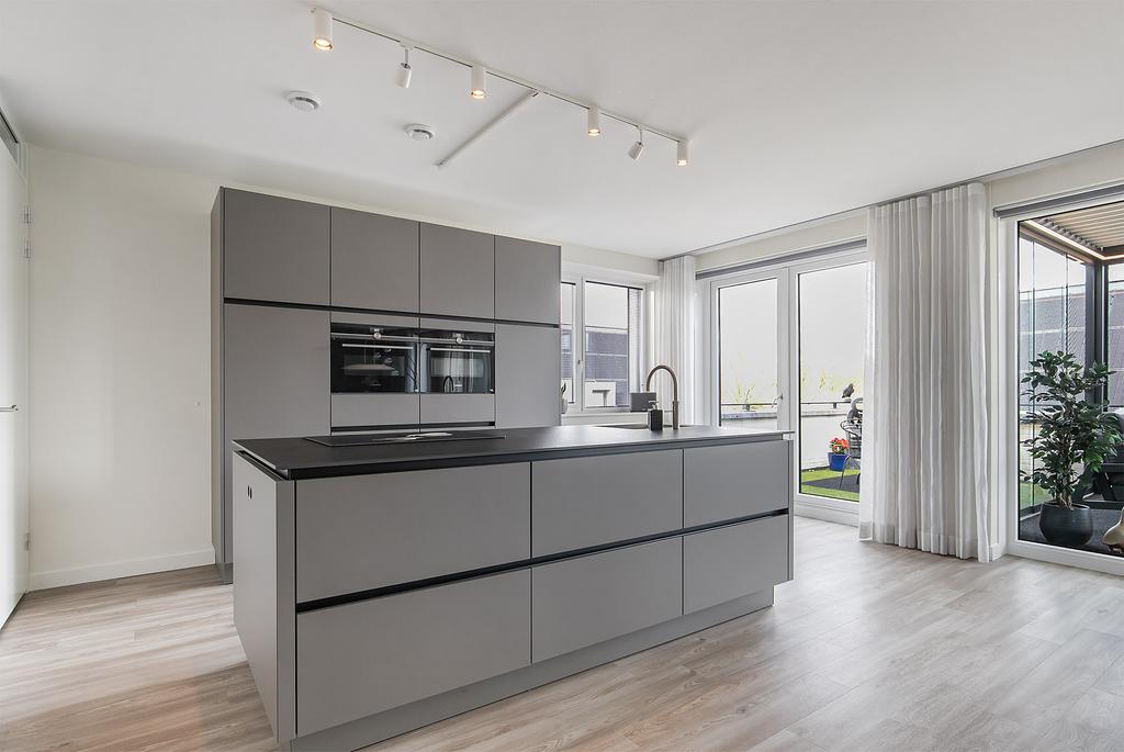 Een energiezuinig en luxe penthouse! Dit moderne, stijlvolle en royale 4-kamerappartement bied je een optimaal woongenot door o.a. een royale woonkamer met een moderne open keuken, praktische bijkeuken, drie ruime slaapkamers, twee moderne badkamers, moderne toiletruimte en een dakterras met een serre. Tevens beschikt het appartement over twee eigen parkeerplaatsen en een eigen berging in de parkeergarage. Het appartement is voorzien van een WTW-installatie, warmtepomp en zonnepanelen en is derhalve energiezuinig en gasloos. Het appartement is op de tweede en tevens bovenste verdieping van...