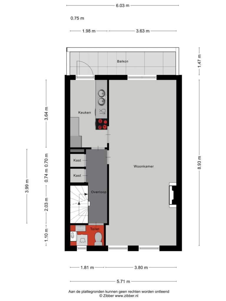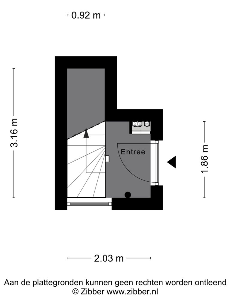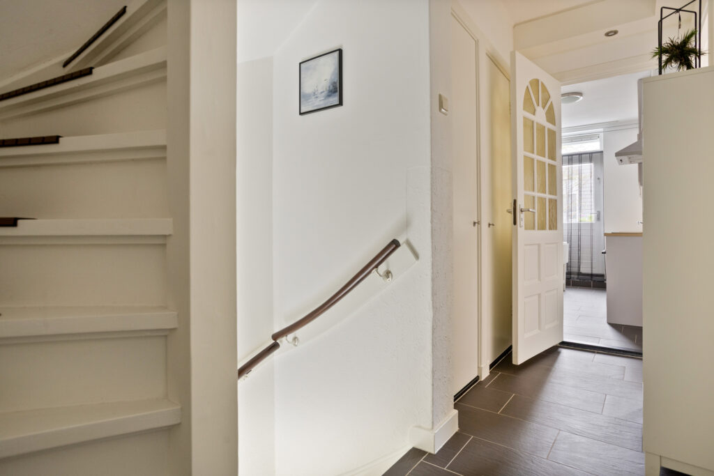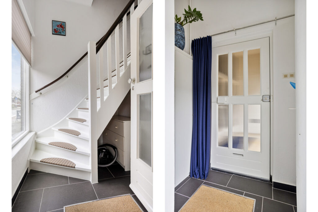 Algemene ontvangsthal met eigen entree en trapopgang naar de eerste verdieping. Tevens bevindt zich hier de meterkast.